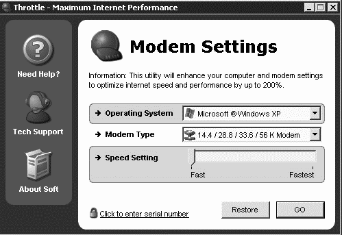 Программа Smart Internet Connection Booster (http://www.softforces.com) не требует установки. Основное ее предназначение – улучшение скорости соединения с Интернетом. Smart Internet Connection Booster корректирует различные скрытые параметры конфигурации TCP/IP.