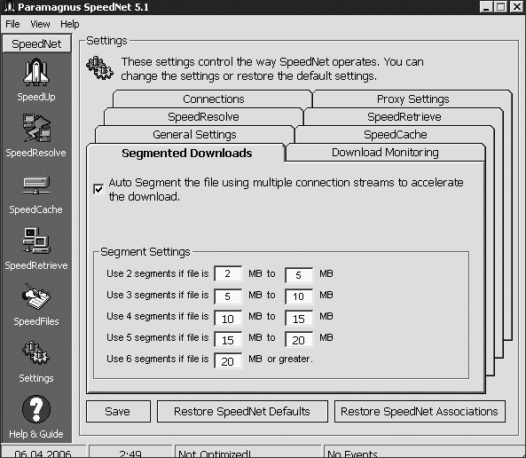 Программа SpeedNet (http://www.paramagnus.com) – это целый набор инструментов, позволяющих сделать работу в Интернете намного более комфортной. SpeedNet способна заменить собой целый ряд программных продуктов, использующихся во время интернет-серфинга, а также оптимизировать настройки интернет-соединения и увеличить скорость работы в Сети.
