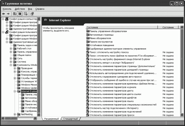 Запретить запрос о сохранении паролей можно в окне настройки групповой политики. Для этого выполните команду Пуск→Выполнить (или воспользуйтесь комбинацией клавиш Windows+R) и в появившемся окне укажите имя файла gpedit.msc – откроется окно Групповая политика. Здесь необходимо перейти в раздел Конфигурация пользователя\Административные шаблоны\Компоненты Windows\Internet Explorer. В данном разделе (рис. 2.1) выберите пункт Запретить автозаполнению сохранение паролей, дважды щелкните на нем кнопкой мыши и в открывшемся окне установите переключатель в положение Включен.