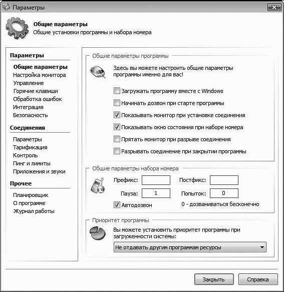 Рис. 1.3. Окно параметров программы MuxaSoft Dialer