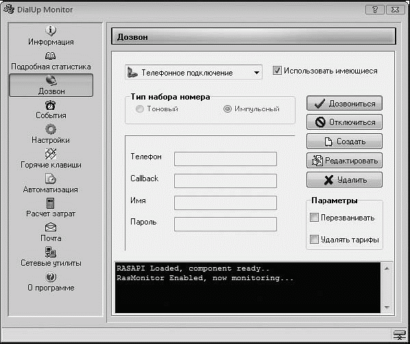 Рис. 1.7. Окно программы DialUp Monitor