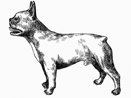 Скрещивание английского (той-бульдога) и испанского (бургосского) бульдогов, мопсов и терьеров положило начало образованию и обособлению новой породы. Голова французского бульдога в точности соответствует голове бургосского, а укороченный корпус – корпусу английского. Отличительными признаками собак новой породы считаются короткая морда и стоячие уши. Кривые лапы являются серьезным пороком.