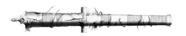 Записи дворцовых разрядов, сделанные по «памятям» Пушкарского приказа, отмечают: вслед за Швецией Россия с 1630 г. начала производить кожаные пушки. В документах записи «о пушечном кожаном деле» достаточно кратки, поэтому узнать какие-нибудь подробности относительно производства таких пушек не всегда представляется возможным. Известно лишь, что на Пушечном дворе кожаные пушки делал приглашенный в Москву шведский мастер Юлиус Коет (по происхождению – валлонец Жиллем Койе). По «памяти» из Пушкарского приказа, 16 июня 1632 г., «немчин Елисей Коет» пожалован сукном «за стрельбу, что он перед государем стрелял на лугу из кожаные пушки июня в 13 день»[75]. Но как уже отмечалось, из-за плохой теплопроводимости веревок бронзовый ствол сильно разогревался и портился от выгорания, что вело к его разрыву.