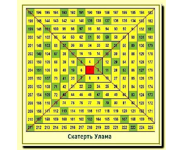 В 1963 г. американско-польский математик Станислав Улам присутствовал на одном чрезвычайно скучном научном докладе. От нечего делать он начал записывать натуральные числа спиралью, как показано на рисунке. И вдруг обнаружил нечто такое, что потрясает воображение любого математика: оказалось, что простые числа распределяются на этом рисунке по ровным диагональным, вертикальным и горизонтальным отрезкам. Отрезки эти разной длины, находятся в разных местах, и тем не менее обнаруженная закономерность продолжается на всем множестве чисел. Сколь долго бы мы не продолжали спираль Улама, простые числа будут послушно группироваться в отрезки, и, как оказалось, каждый такой отрезок соответствует какому-то квадратному многочлену наподобие тех, что открыл Эйлер. Простые числа выстраиваются как молнии, переплетаются как неведомые коды и иероглифы из миров, лежащих за пределами человеческого опыта. Откуда они там появились? Почему, монотонно прибавляя единицу, мы получаем эти загадочные структуры, объективные для всех, но существующие только в нашем сознании? Простые числа показывают нам, что для соприкосновения с бездной необязательно лететь в далекие галактики или расщеплять частицы. Мы можем уютно расположиться в кресле и найти эту бездну в нашем собственном разуме.