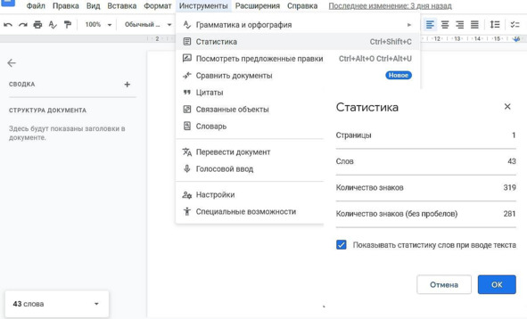 Вот как посмотреть статистику в Гугл Докс
