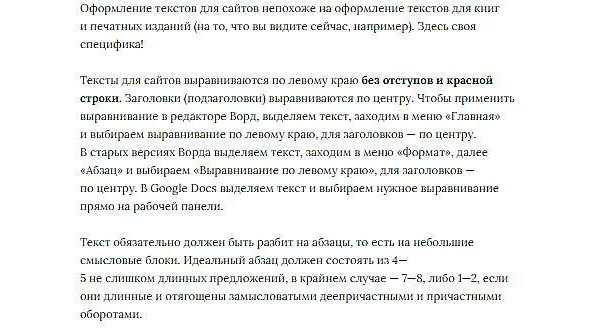 Оформление текстов для сайтов не совсем похоже на оформление текстов для книг и печатных изданий (на то, что вы видите сейчас, например). Здесь своя специфика!