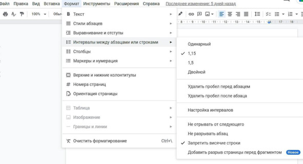 Задать интервалы можно в Ворде в меню «Макет», в более старых версиях – в меню «Формат», потом «Абзац» и «Отступы и интервалы», «Интервал» В Google Docs – меню «Формат», «Интервалы между абзацами и строками», «Настройка интервалов». Размер интервала – 12 pt.