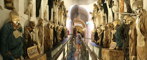 Друг его теперь приходит сюда один и целыми часами глядит на скелет, неподвижно стоящий на указанном месте…». Так заканчивает описание Catacombe Convento dei Cappuccini Мопассан.