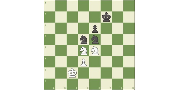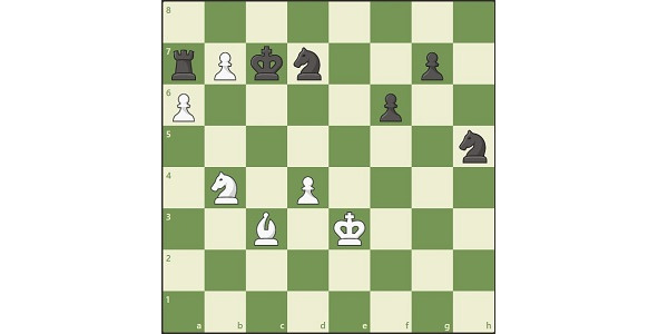 Иногда считается, что слон чуть сильнее коня, а иногда и наоборот. Всегда все зависит от ситуации на доске, и опыта стороны. Посмотрим на следующую схему.