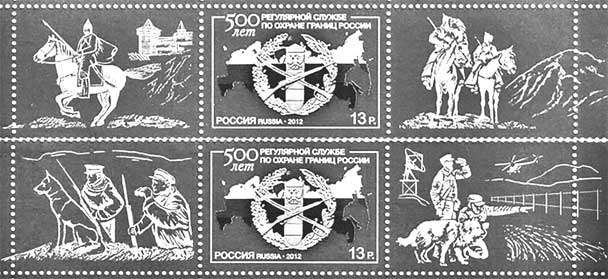 Почтовые марки из серии «500 лет регулярной службе по охране границы России»