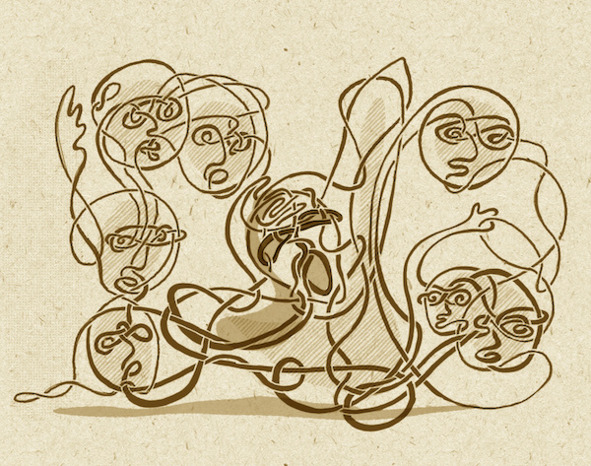 Тем, кто без масок, тут же предлагают их. Кто-то снимает свою и отдает. На его же лице остается еще одна личина, еще более ужасная. Многие меняются лицами при совместной жизни. Даже дети примеряют тряпки, бумагу, пластмассу и фольгу на свои чистые и наивные личики. Старики, столкнувшись в слабости и болезни со своим лицом, стремятся закрыть его хотя бы обветшалыми кусками крашенного картона и ветоши. В храме, на работе, перед сном, на экране телевизора – все играют, фальшивят и скрывают то, чего, вероятно, никогда и не знали. Некоторые не осознают, что они прячут свое лицо, так как носят маску давно и она приросла, изменив личность под себя.
