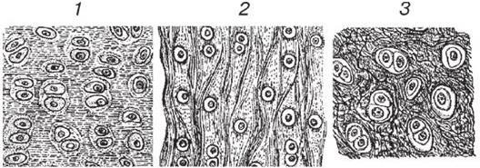 Хрящевая ткань, как и костная, относится к скелетным тканям с опорно-механической функцией. По классификации выделяют три разновидности хрящевой ткани – гиалиновую, эластическую и волокнистую (рис. 1.6). Особенности строения различных видов хрящевой ткани зависят от места расположения ее в организме, механических условий, возраста индивидуума.