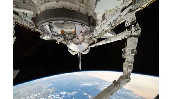С орбиты видна шаровидность планеты. Предмет долгих споров и результат многочисленных измерений – форма Земли – открывается непосредственно взору космонавтов при взгляде на планету. (s131e007442)