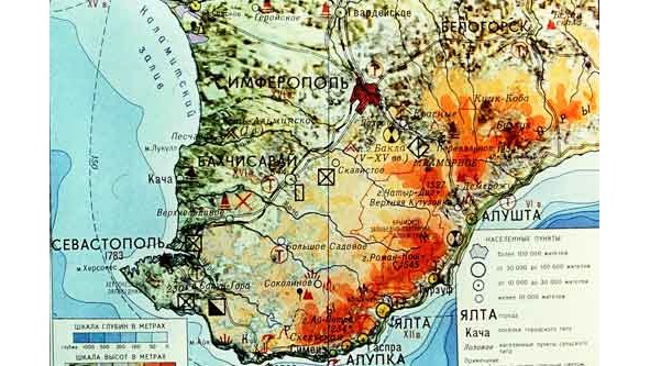 Карта способна уменьшить размеры мира до масштабов, удобных для обозрения. Орбитальная карта уточняет не только береговые очертания, но и контуры отдельных полей. Фрагмент одной из первых спутниковых карт -физической учебной фотокарты Крыма.