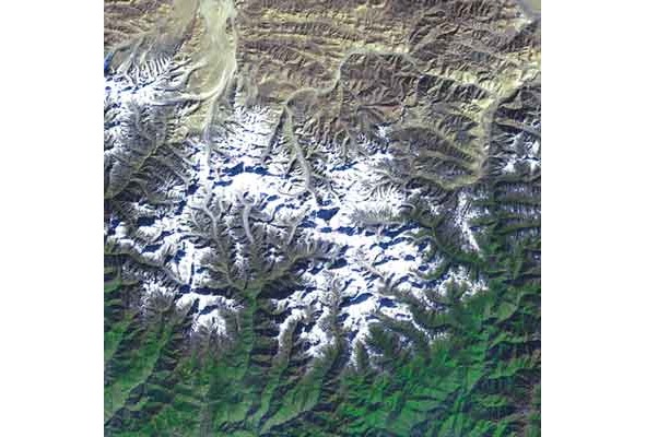 Гималаи с высочайшей вершиной мира – Эверестом – территория, труднодоступная для изучения наземными методами. (Landsat_05jan2002_lrg)