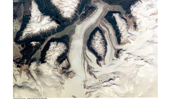 Космическая обзорность ледниковой системы Патагонии. (iss01e5107)