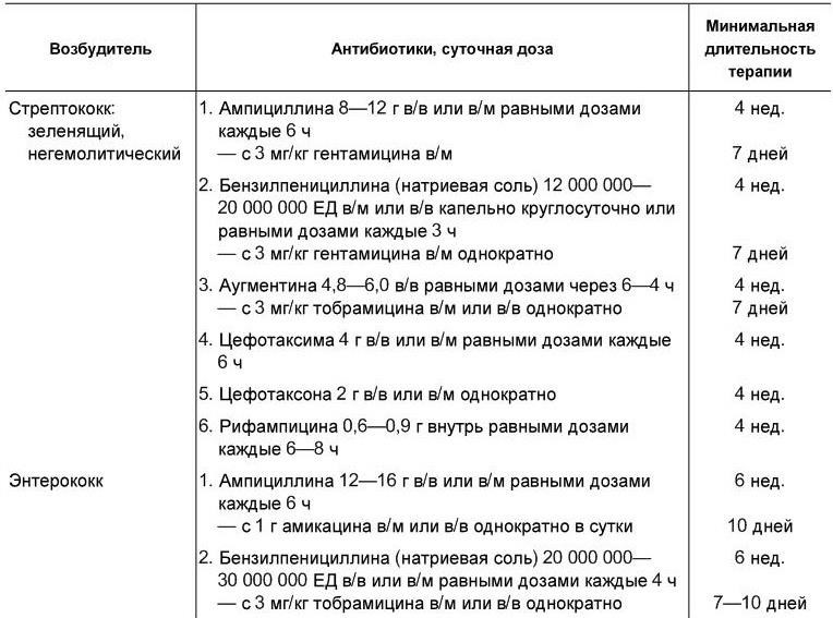Антибиотики, применяемые при инфекционном эндокардите в зависимости от этиологии болезни