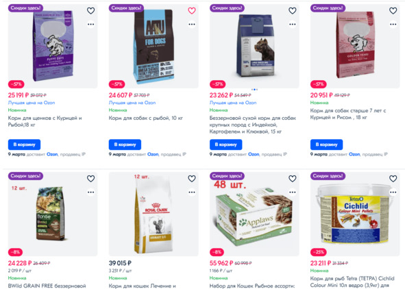 Товары для животных чаще всего заказывают с маркетплейсов, так как с помощью скидок, устанавливаемых самим маркетплейсом, покупателям это намного выгоднее. Чаще всего покупают: