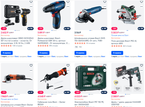 Товары для строительства и ремонта также пользуются популярностью, вот некоторые из них: