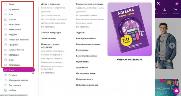 В книжном интернет-магазине вы найдете только книги, канцелярию, развивающие игрушки. И не найдете там одежду, обувь, спортинвентарь.
