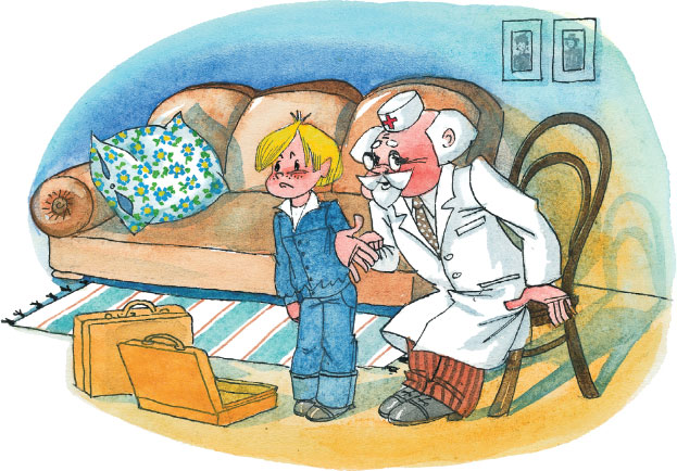 Когда Петька наконец вошёл в комнату Анны Петровны, Детский Доктор уже сидел на стуле и со счастливой улыбкой вытирал со лба крупные капли пота. А перед ним на полу стояли рядышком два одинаковых жёлтых чемоданчика.