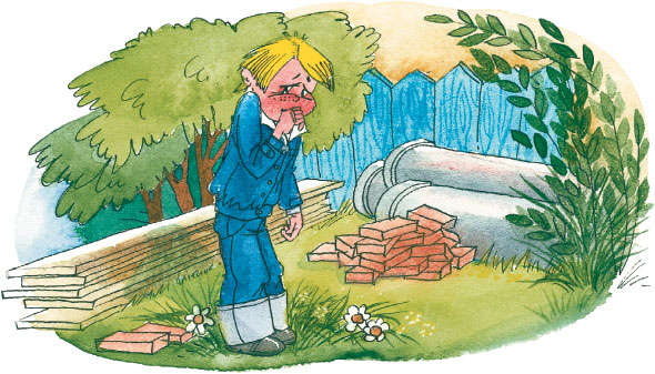 Около забора была навалена груда кирпичей и лежали толстые трубы. В такую трубу мог свободно залезть довольно большой зверь, а за кирпичами мог спрятаться тигр или полслона.