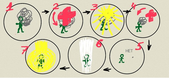 Для простоты понимания я нарисовал все последовательно. Можно все рисовать на одном рисунке. Ура! Мы ликвидировали последствия сглаза. Полезно такую работу проводить периодически и после конфликтных ситуаций любого рода, вдруг вы нечаянно наступили на мозоль «гадливому человеку».
