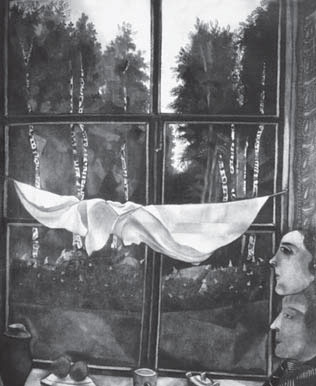 Илл. 2. М. Шагал. Окно на даче. 1915. Картон, гуашь. ГТГ.