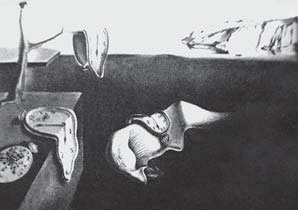 Ориентация на универсальную метафору определяет и переносы значений у Сальвадора Дали. Примером может служить универсальное сравнение времени с рекой (река времени с признаком ‘текучесть’): так возникает знаменитое изображение стекающего циферблата [илл. 4]. Дали оперирует фигурой катахрезы. Впрочем, литературность Дали лежит на поверхности – изобразительная семантика его живописи литературна par excellence (как в дурном, так и в безоценочном смысле).