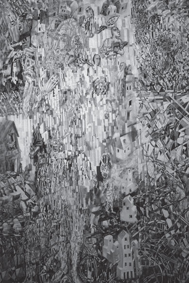 Важная тема в рамках цитаты как риторического приема в искусстве ХХ века – фигура палимпсеста в авангарде. Палимпсест в авангарде явился предметом живых обсуждений на материале литературы, однако и в последнее время он находит своих исследователей и в искусстве, в частности применительно к творчеству современного немецкого художника А. Кифера[22]. Последний напрямую апеллирует к этой фигуре, прослыв врачевателем историко-национальных травм, связанных с нацистским прошлым Германии. Вместе с тем принципом палимпсеста отмечена вся поэтика исторического авангарда в целом, однако она часто выступает в более прикровенном виде. Так, если иметь в виду многослойность образности изображения с «проступанием» целого хора голосов и смыслов, в качестве палимпсеста можно рассматривать живописные коллажи Малевича, и фотомонтажи Родченко, и полисемантичные композиции Филонова (к примеру, «Формула петроградского пролетариата», 1920–1921) и даже – если иметь в виду «просвечивание» композиционных планов – раннего Шагала («Я и моя деревня», 1911) [илл. 9, 10]. В этом отношении знаменательно название полотна Ивана Пуни – «Мытье окон» (1915): в «отмывании» слоев-смыслов проступают истинные черты зримого мира, открывающиеся глазу авангардного художника в неразрывной сцепленности их многоголосия [илл. 11].