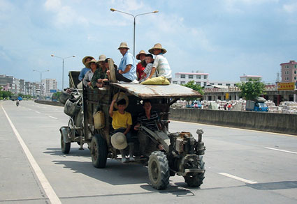 Утром в городке было оживленно. Спешили на работу китайские крестьяне, вечно что-то несущие или толкающие в телегах перед собой. Даже легкие мотоциклы выполняли полезную работу – на их багажниках помещались, например, две живых свиньи, бычок, несколько овец, полсотни куриц или двухкамерный холодильник. Никто не бездельничал, все торопились по делам. Тем сложнее был автостоп: неудачно махнув рукой можно было сбить спешащего крестьянина или велосипедиста.