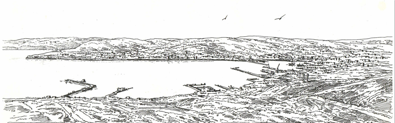 Однотипные т/х (теплоходы) «Кемал» и «Арман» стояли, ошвартованные лагом (борт к борту) с внутренней стороны глаголя причала №35, форштевнями (носами) в сторону здания морвокзала. И северо-восточный ветер для них был отжимной, то есть суда принимали его на свой правый борт и ветер «отжимал» – отрывал их от причальной стенки. Теплоходы, каждый по тридцать метров длиной, занимали почти всю «перекладину буквы «Г», которую образовывал собой «гугль» 35-го причала. На длинной стороне буквы «Г» причала, между двух причальных стенок, располагалось всем известное в Новороссийске здание морского вокзала с круглой надстройкой на крыше – «визитная карточка» Новороссийска, – очень похожей на летающую тарелку, которая села в центре города прямо на плоскую крышу здания вокзала. Оно до сих пор является частью историче-ского центра и до сих пор по периметру на «тарелке», как на матросской бескозырке, написано огромными синими буквами «Новороссийск». Теплоходы наши стояли в 50 метрах от этого места и попадали в «парадную фотокарточку» города.