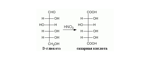 Жесткое окисление до альдаровых кислот, реакция происходит в жестких условиях, например при больших концентрациях сильных кислот, например, азотной. В результате происходит окисление обеих групп – альдегидной и последней спиртовой, в результате образуется дикарбоновая кислота, или альдаровая (Рисунок 13).