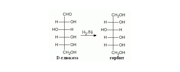 Восстановление моносахаридов. Восстановлению могут подвергаться как альдегидная, так и спиртовые группы