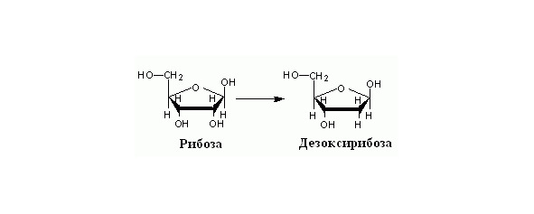 Восстановление спиртовой группы. В клетке происходит переход рибозы в дезоксирибозу (Рисунок 15). Эта реакция происходит в природе, но при несколько иных условиях. Это один из основных способов синтеза дезоксисахаров.
