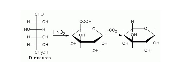 Укорочение цепи. Этот процесс связан с окислением в средних условиях. Карбоксильная группа в последнем положении нестабильна и легко отщепляется от молекулы, в результате углевод становится на один атом короче (Рисунок 17).