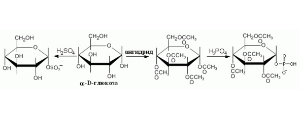 Неорганические кислоты бывают сильными и слабыми, это объясняет различия их взаимодействия с моносахаридами. Сильные кислоты, например серная, вступают в реакцию с полуацетальной гидроксильной группой, образуя эфир, слабые кислоты вступают в реакцию только после реакции ацилирования, но модифицируют только эфир образованный полуацетальной группой.