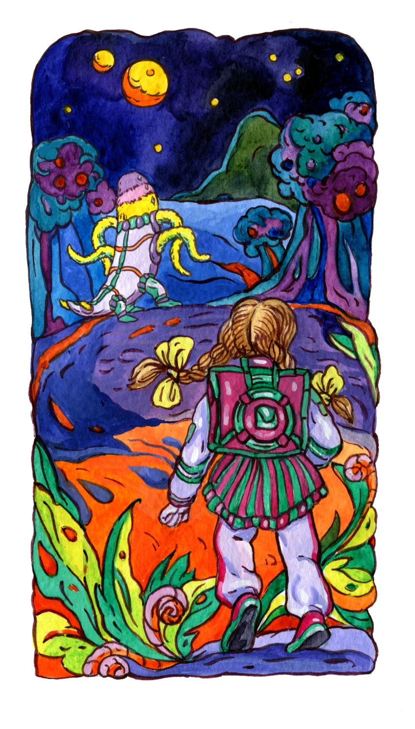 – В любую! – с энтузиазмом воскликнул Взюк и побежал мимо одинокого дерева к горизонту.