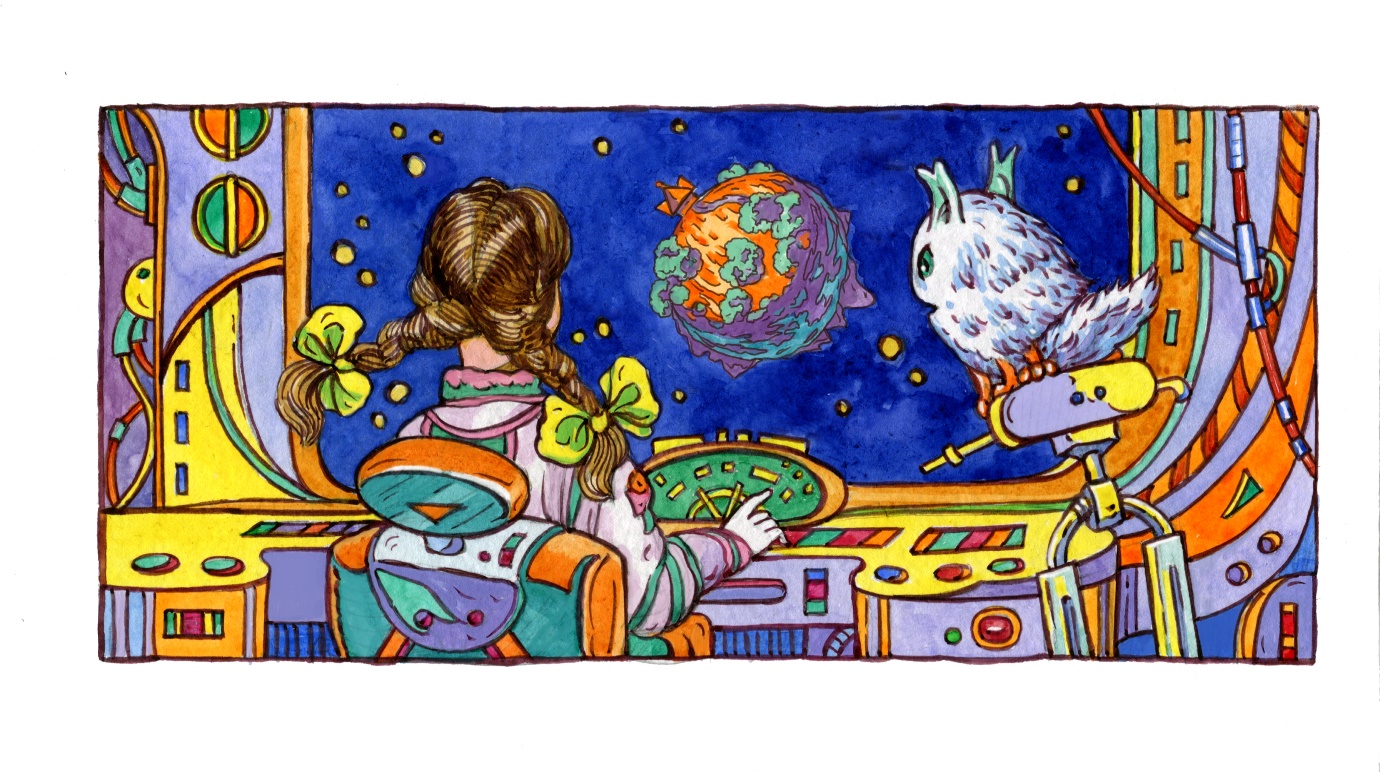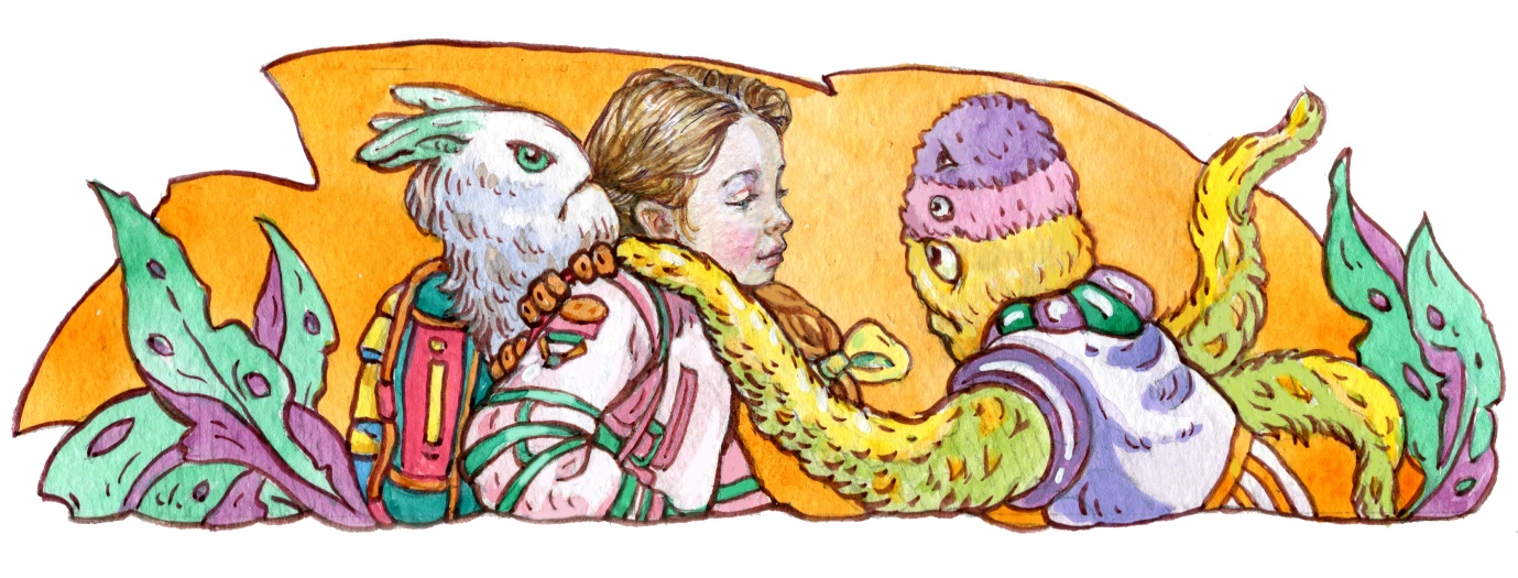 Лисана гладила по шёрстке лежащего у неё на коленях Плюпса и глядела, как крохотный Хрюпитер уплывает вдаль.