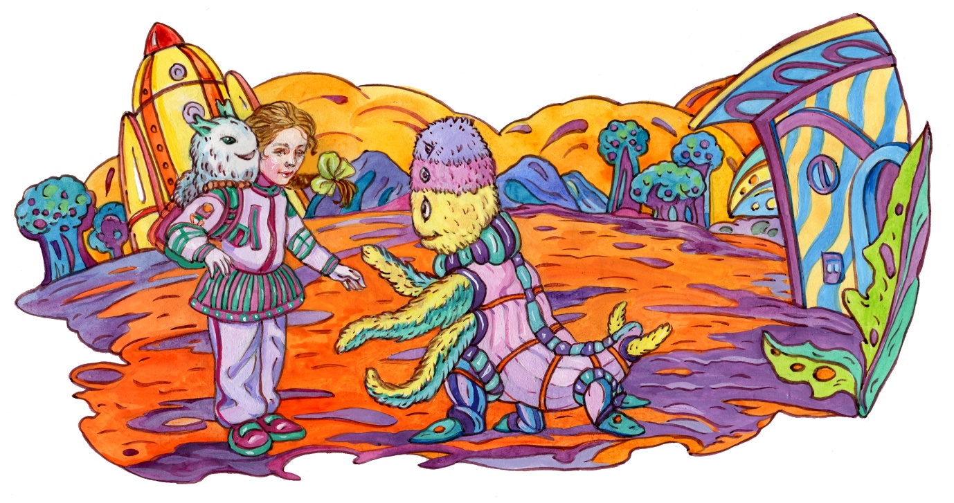 Опять дождь! Крупные капли барабанят по стеклу и стекают, оставляя на окне кривые дорожки. Лисана грустит, теребя шёрстку Плюпса – питомца, привезённого мамой из командировки на планету Смеркурий. Плюпс распластался на столике, раскинул все шесть лап в стороны, выпятив круглый пушистый животик и, похрюкивая от удовольствия, шевелил короткими раздвоенными ушами.