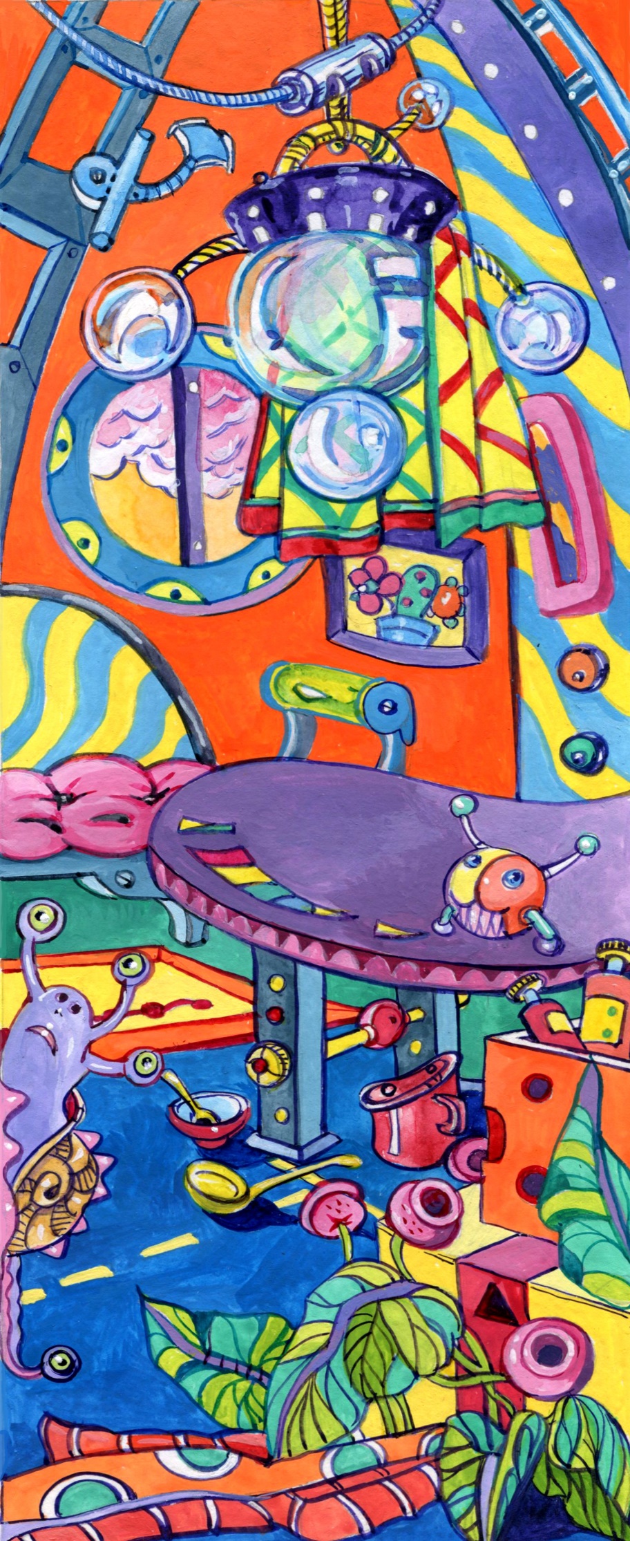 Хрюпитерианец дико взвизгнул и отпрыгнул назад, перевернув стол взмахом щупалец. Потом пригляделся и опасливо подошёл поближе.