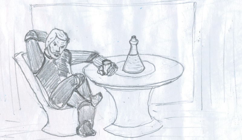 У дальнего окна в углу в стороне от громких речей, звона бокалов и смеха в тишине сидел седой мужчина с такими же седыми усами и бородой. При этом сам он не выглядел как-то старо, потому что старость богатых и обеспеченных людей в 26-м веке поражала внезапно за день-два до смерти. Различные дорогие рекреационные и омолаживающие комплексы неплохо справлялись со своей ролью в обществе, позволяя и в 50 выглядеть на 25. Седины того одиночки они тоже могли бы легко омолодить, но, видимо, в силу некоторых личных причин и мотивов тот оставлял их нетронутыми. С чем-то подобным Мекелдоно встречался в среде наемников. Те сознательно сохраняли шрамы и отметины от ран, дабы иметь наглядную демонстрацию своего опыта и мастерства.