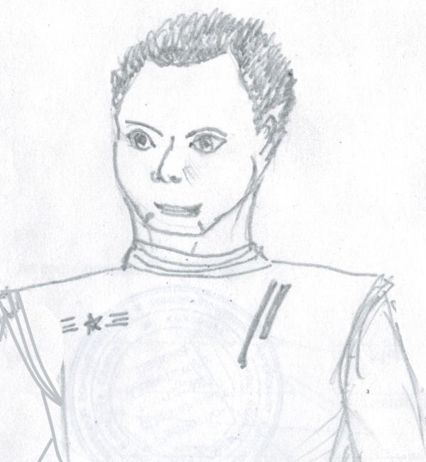 У входа в окружении двух охранников появился некто высокий статный в серебристом костюме Патруля с иными, чем у присутствующих гравировками и знаками отличия. Мекелдоно попало на глаза его гладковыбритое ухоженное лицо с совсем маленькими карими глазами-бусинками, копной вьющихся ровно подстриженных каштановых волос, волевым широким подбородком и тонкими словно две струны губами.