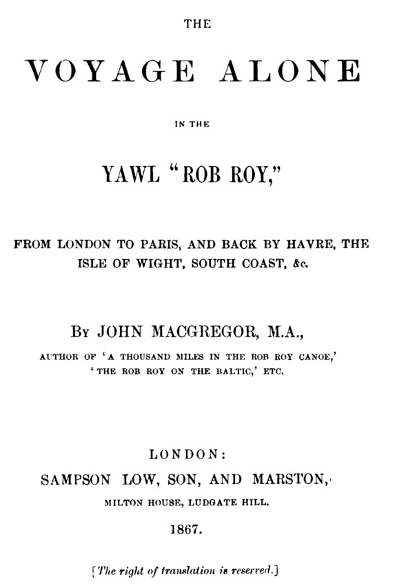 Оттуда путь по морю привел нас через широкий Канал (100 миль) в Каус к его регатам, бурным водам и темным грозовым ночам, а потом, снова под чистым небом, мы завершили плавание, поднявшись по Темзе и Мидуэю. Все путешествие автор совершил один, без попутчика, ночуя и готовя себе пищу на борту. Надеюсь, мои записки покажут, что путешествие не только было чудесным для самого мореплавателя, но что его опыт будет полезен для других.