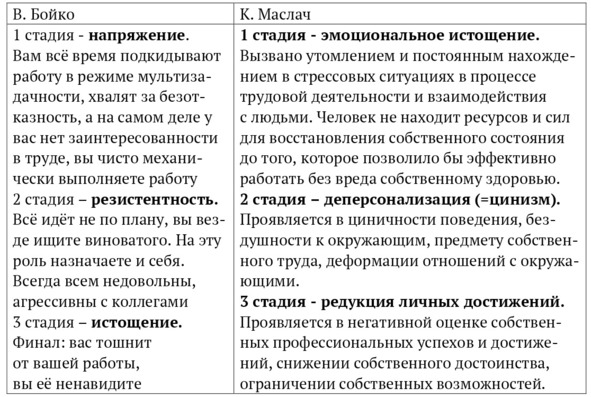 Уже известные нам Виктор Бойко и Кристина Маслач придерживаются трёхфакторных моделей выгорания, которые тоже очень похожи. Сравните сами: