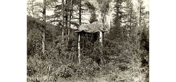 На полевом лагере на построенном лабазе оставили часть снаряжения – свернутые палатки, брезенты и посуду, чтобы не завозить его по новой в следующем сезоне и не тратить на это летные часы вертолета.