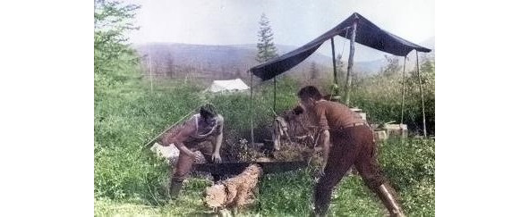 А еще я завидовал тем техникам, которые работали в геолого-съемочных партиях. Они выполняли пусть и не работу геолога, но все-таки получали персональные задания и вели самостоятельные маршруты по шлиховому опробованию водотоков, работой с горняками, задавая им места для шурфов, описывая их и отбирая пробы на промывку. Особо продвинутым поручали и картировочные маршруты. В общем, они набирались опыта ведения геологической работы, а я корпел под рюкзаком и со скукой колотил фауну. Самым приятным для меня был перерыв на обед и разведение огня для костра, как мы ерничали – «с одной спички». Набрав воды в котелок, я подвешивал его над огнем и доставал нехитрый припас: хлеб, сахар, бывает куски жареной рыбы или кусочек сливочного масла.