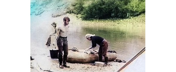Помню, идем мы на дюралевой лодке на моторе по Колыме возвращаясь из маршрута. Я за ручкой «Москвы», Сидяченко и его супруга на лавочке.