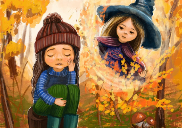 И вот однажды Фея брела потихоньку по осеннему лесу и радовалась его щедрым дарам. Грибы, ягоды и пестрые листья встречались ей на каждом шагу. Солнечные лучики отражались в каждой травинке и листике. Лес был поистине прекрасным.