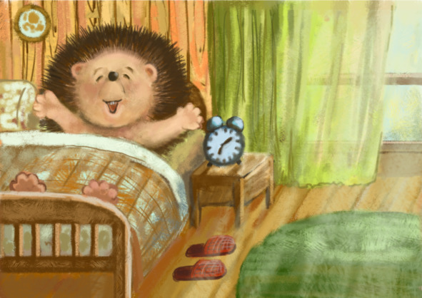 Сначала он сладко потягивался, зевал и даже не пытался открывать глаза. И хотя на тумбочке стоял будильник и трезвонил без умолку, Ежик не спешил подниматься с уютной постели. Удобные домашние тапочки напрасно ожидали пробуждения своего хозяина. И даже яркие солнечные лучики, проникающие в комнату через занавеску, не могли заставить Ежика подняться.